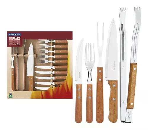 Este juego de cubiertos Tramontina Churrasco de 24 piezas es ideal para disfrutar de deliciosas comidas al aire libre o en casa.