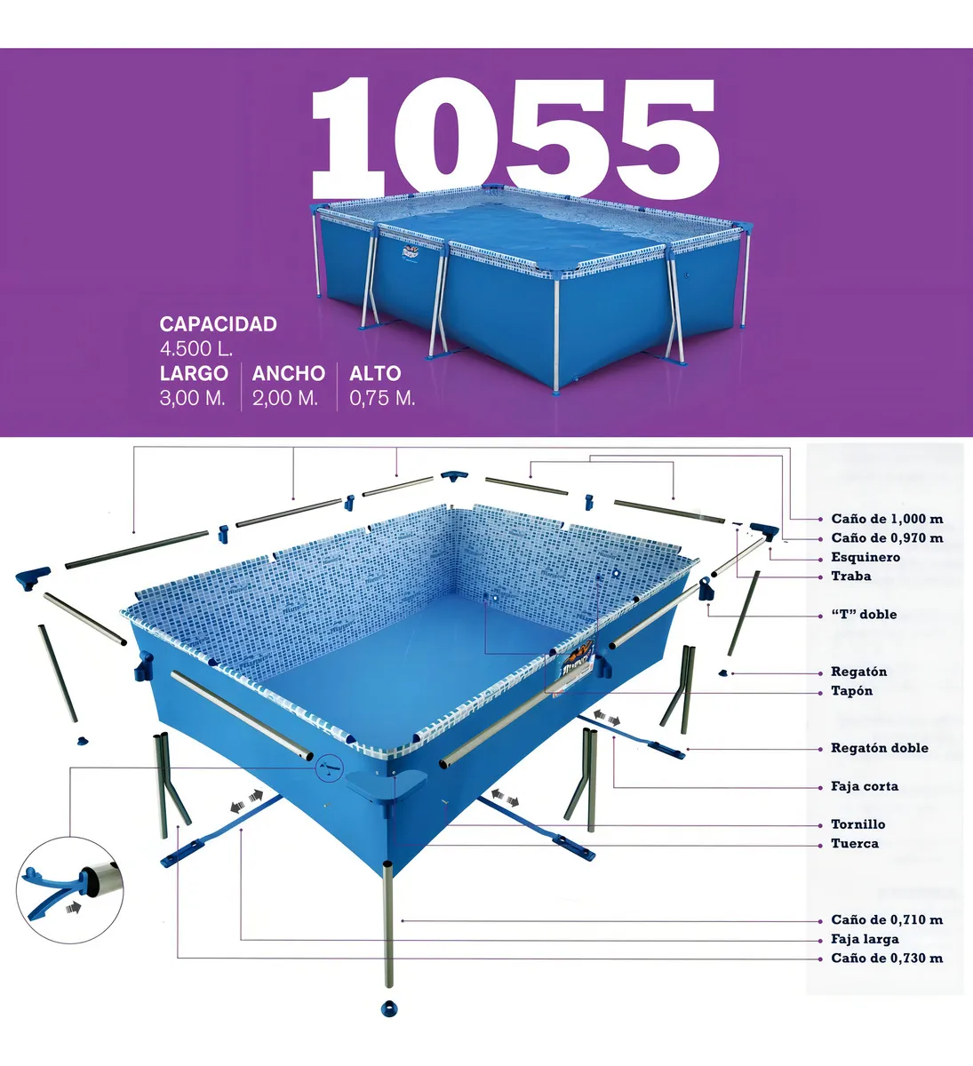 Pileta estructural rectangular Pelopincho 1055 con capacidad de 4500 litros 2×3 m